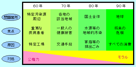 社会が変わり始める…豊かな社会を保証する経済成長、快適な生活を支えるエネルギー消費、は先進国の基本条件である。環境対策を進めれば、矛盾が生じる。そのため、総論賛成・各論反対状態が続き、抜本的な施策は展開できずにいる。過去を紐解けば、10年毎に流れが変わって来た。ということは、次ぎの10年で、状況が急変する可能性がある。激変の前に、研究開発方針を転換していないと、大きなダメージを受けるかもしれない。