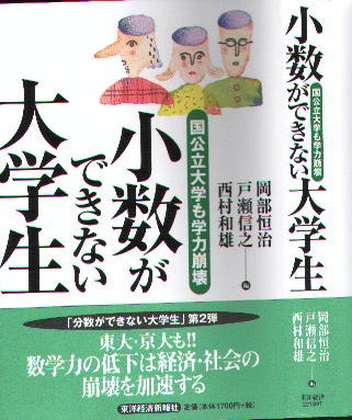「学力低下が企業を殺す」…1994年、週刊ダイヤモンド(3月5日号)で西村和雄先生が、「入試制度改革が基礎学力のない大学生を生んでいる」との警告を発した。企業の研究マネジメントの方々も技術立国の基盤が揺らぐ可能性があると、気にかけたと思う。それから数年。いよいよ、その警告が現実化し始めた。思考力も乏しく、論理性に欠ける「優秀な学生」が、企業に入って来た。「メーカーは人気薄なので、どうも一流の頭脳は来たがらないようだ」とおっしゃる研究所長もおられるが、実は「優等生」を採用しているのかもしれない。 大学や研究機関の指導者のなかにも、「箸にも棒にもかからぬ学生が研究室にいる」とおっしゃる方々がおられる。特に、産業技術に関係する先生方の危機感は相当なものだ。「このままでは、欧米と互角に戦う自信が持てない」と弱音を吐く方までおられる。 このような話しをすると、少数の逸話で危機感醸成を図ろうという姑息な主張と感じる方もあろう。是非、生のデータと現場の声に触れて頂きたい。実態は想像以上である。西村先生は「学力低下が企業を殺す」とおっしゃっているが、まさに図星である。