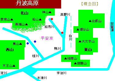 ・玄武(北)の「丘陵」は北山・丹波高原。